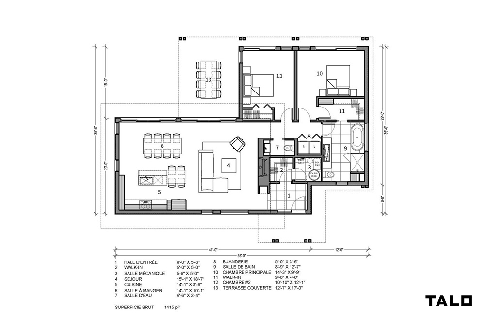 - Aire habitable : 1415 p.c.